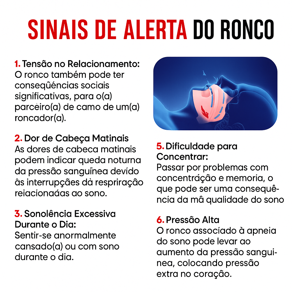 Além disso, ao contrário da crença popular, o ronco é mais do que apenas um pequeno inconveniente... Ele sabota o seu sono e o do seu parceiro, criando tensão e prejudicando silenciosamente o seu relacionamento.